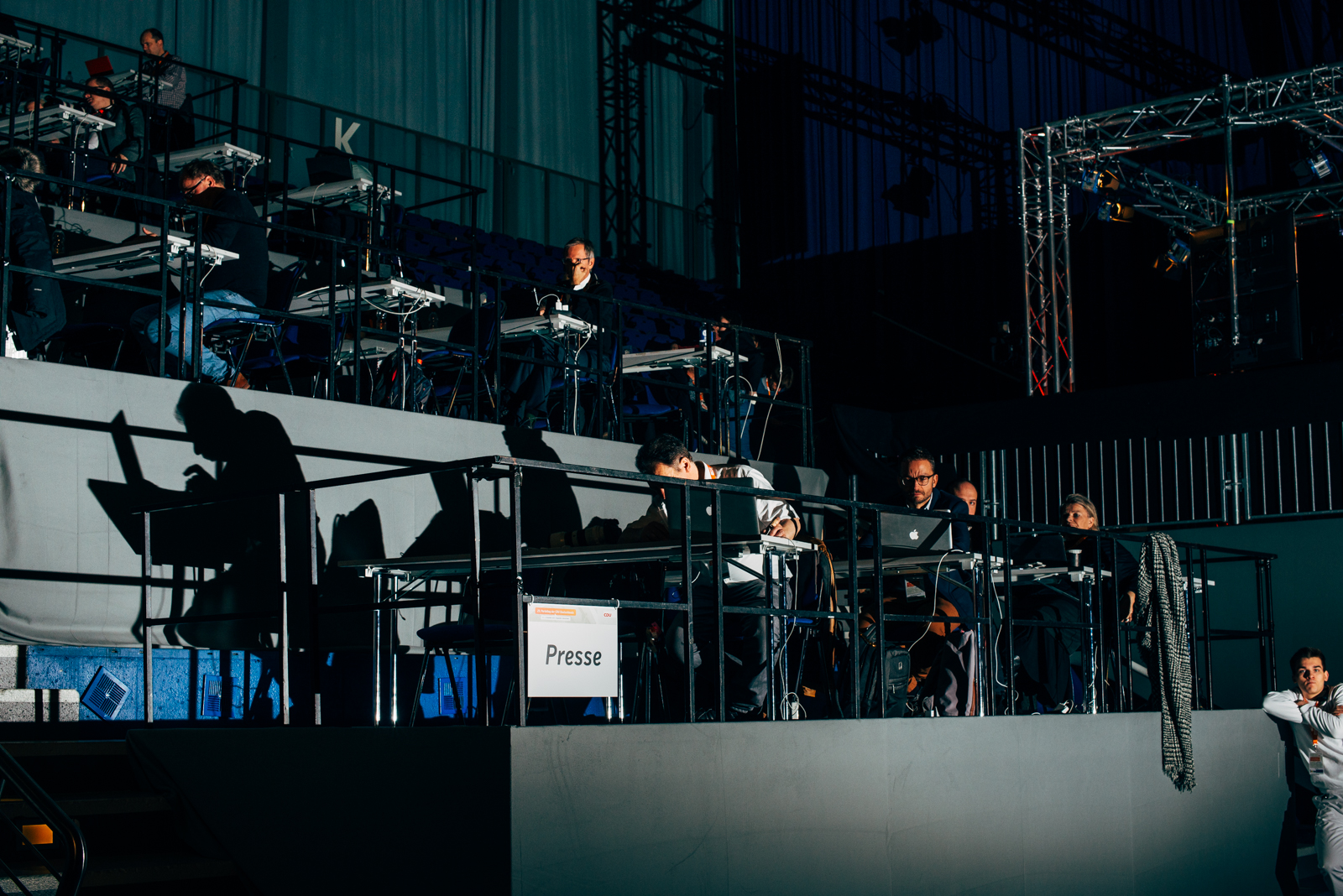 “In the weeks leading up to the 2017 federal election, the political parties reaffirm their identities at their national conventions. Primarily, these large-scale events are about creating images—images meant to appear on prime-time news broadcasts like Tagesthemen and heute journal. The effort that goes into staging these events is immense: sets are built, tons of cables are laid, and sound and lighting are meticulously controlled. Every shot has to be perfect. The parties and their prominent representatives want—and need—to look good.